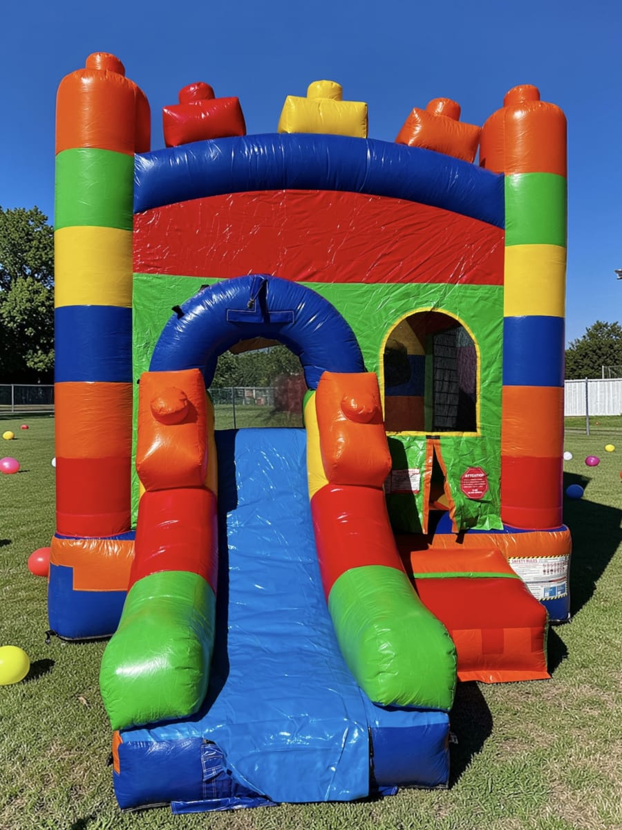 Bring giant block-building fun to your next celebration with our 12x12 Blocks Combo Bounce House — a colorful, kid-safe unit that pairs lively bounce space with an attached slide for extra excitement 🎉🧱. Our team loves seeing littles stack pretend block walls, zoom down the slide, and laugh together. We deliver, set up, and take down so you can enjoy the party without the stress.