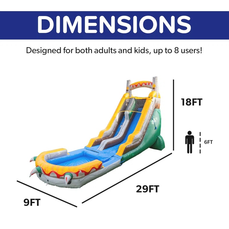- Massive Size & Exciting Design: Standing 18 feet tall and featuring a fierce T-Rex theme, this inflatable slide transforms your backyard into a wild Jurassic escape that wows every guest.